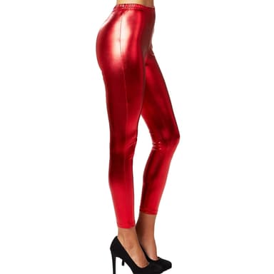 Leggings i metallisk look kendetegnes ved ekstravagance og alligevel stor alsidighed. Med deres skinnende og samtidig bevidst enkle look kan de lange bukser bruges lige godt sammen med et glamour-outfit som til et futuristisk kostume. Det rynkede bånd skaber et ekstra optisk pift. Takket være gummibåndet og det elastiske materiale er det stramtsiddende stykke tøj meget behageligt at have på, materiale: 100 % elastan.