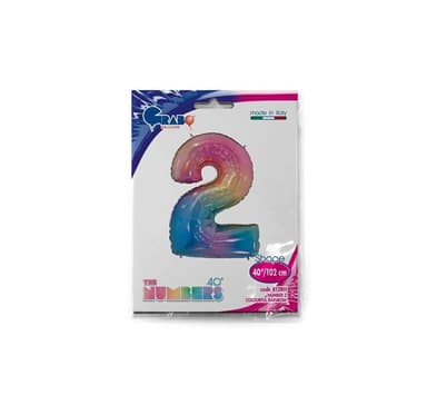 Folie ballon. Nummer ""2"" farvet. Størrelse 40""/102 cm Ikke oppustet ballon.Læs mere om produktet