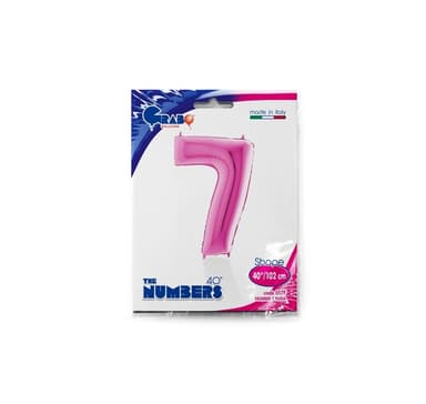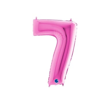 Folie ballon. Nummer ""7"", pink farve. Størrelse 40""/102 cm Ikke oppustet ballon.Læs mere om produktet