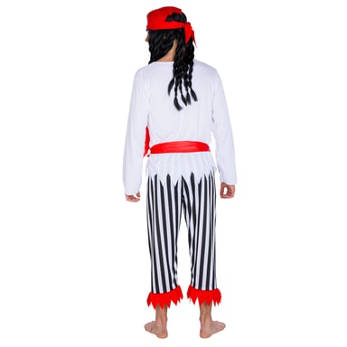 Kostume til mænd, Piratkaptajn Enøjede Henry, består af et par elastiske jJersey bukser med elastiklinning. Overdelen i jersey stretch med piratudskæring har bindebånd på kragen og en påsyet, rødt skærf.Læs mere om produktet