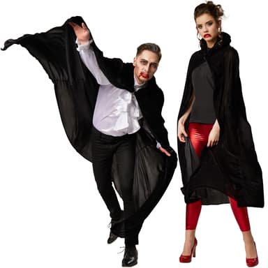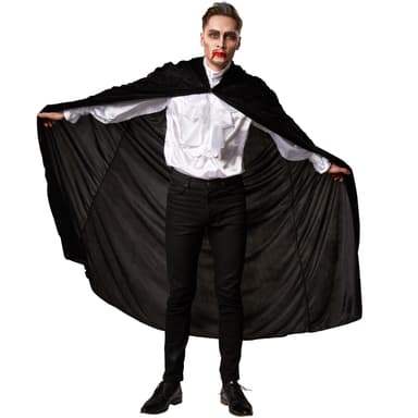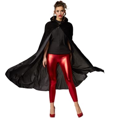 Pep dit fastelavnskostume op med den ærmeløse fløjlskappe med hætte til hende og ham. Det fine stof omgiver sin ejer med en hemmelighedsfuld aura. Om det er som ridder, vampyr eller troldmand, vil fløjlskappen give din udklædning noget ekstra.