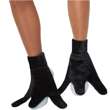 Kvindekostumet, sjov paradisfugl, er lavet af plys og består af en kort kjole, en hat samt benvarmere i klofacon. Den korte kjole med velcrolukning i nakken er fremstillet i forskellige blå farvetoner. Kraven har en hvid indsats med takket mønster.Læs mere om produktet