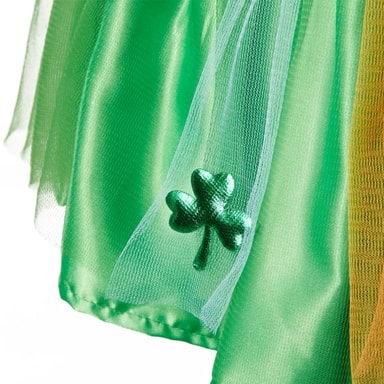 Tilbehøret St. Patrick’s Day tylskørt i nationalfarverne er grønt og har en hvid, fremhævet elastiklinning. Tylnederdelen er kortere end underskørtet af glanssatin. Oven på den er der anbragt grønne, hvide og orangefarvede tylstrimler.Læs mere om produktet