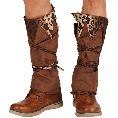 Kostumet består af en gevandt og benvarmere. Materiale: 100 % polyester.