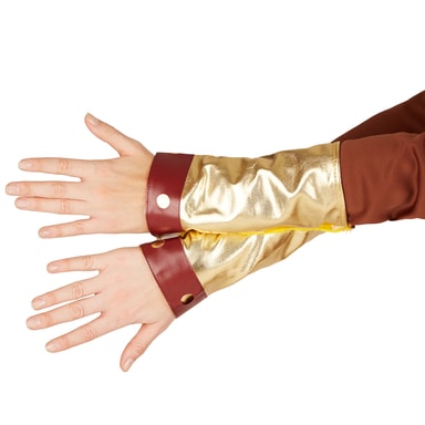 Kostumet består af en kjole med kappe, et bælte, en hat og knæhøje støvleskafter. Materiale: 100 % polyester.