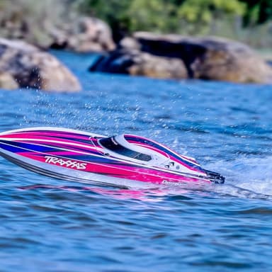 Traxxas her med Disruptor SR! Denne 66cm lange båten har en toppfart på 65km/t+ og kommer med Traxxas Self righting som hjelper deg hvis du er uheldiLæs mere om produktet