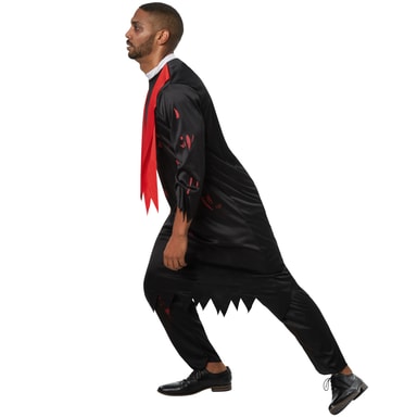 Herrekostumet, skræmmende præst, til Halloween består af tøj med takket mønster forneden og et par lange bukser. På den opretstående krage er der en lynlås i nakken. På skuldrene er der syet røde bånd fast, som holder stolaen fast.Læs mere om produktet