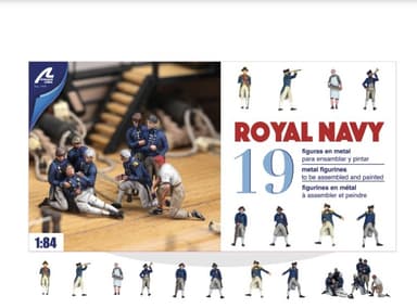 Sett med 19 metallfigurer i skala 1:84, for montering og maling, tilpasset treskipsmodeller fra den britiske Royal Navy, som for eksempel linjeskipet HMS Victory. Figurene passer også utmerket til andre marine modeller i samme skala og epoke, 1700-tallet og tidlig 1800-tall. Hver figur måler omtrent 20 mm. Settet Inneholder 19 Figurer