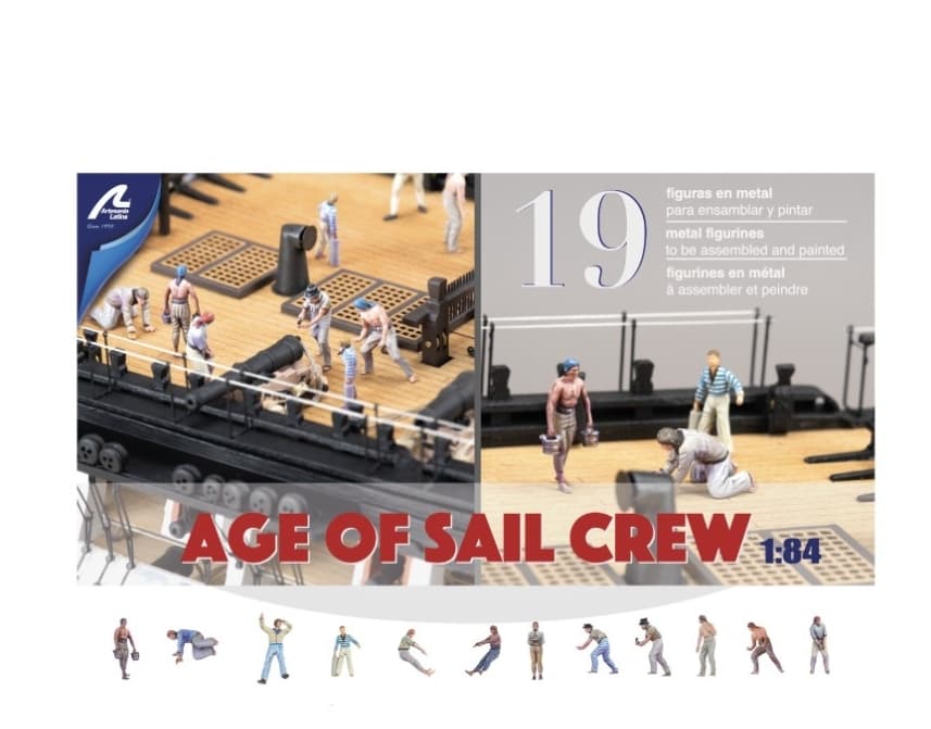 Sett med 19 metallfigurer i skala 1:84 for montering og maling, utviklet for treskipsmodeller med mannskap fra seilskutetiden (1700-1815). Settet fungerer som tilleggsmannskap og passer spesielt godt til modeller som HMS Victory, samt miniatyrmodeller av Cutty Sark, St. John of Nepomuk, St. Anne og Holy Trinity. Det kan også brukes til andre skipsmodeller i samme skala og tidsperiode, 1700- og tidlig 1800-tall. Hver figur måler ca. 20 mm. Settet Inneholder 19 Figurer