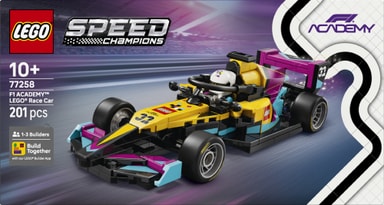 I 2026 deltager LEGO Koncernen for første gang i F1 ACADEMY™ med deres egen F1 ACADEMY-bil, og piger og drenge fra 10 år kan bygge deres egen udstillingsmodel. LEGO® Speed Champions F1 ACADEMY LEGO® racerbil (77258) er ideel til leg og udstilling og indeholder mange af de samme detaljer som den model, der bruges i F1 ACADEMY, mesterskabet for kvindelige racerkørere.