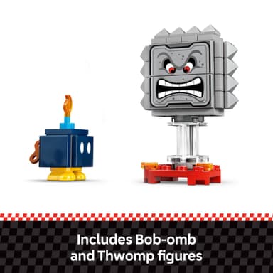 • En interaktiv LEGO Mario legetøjsfigur samt figurer af Bob-omb og Thwomp