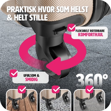 Udstyret med et robust teleskophåndtag i aluminium og 360° støjsvage gummihjul, gør vores rejsekuffertsæt det nemt at manøvrere gennem travle lufthavne og banegårde. De stille hjul sikrer en jævn og ubesværet bevægelse, hvilket gør det til en fornøjelse at rejse med dette sæt. Kufferterne har også et kombinationslås, der giver dig ro i sindet ved at sikre dine ejendele mod uautoriseret adgang.