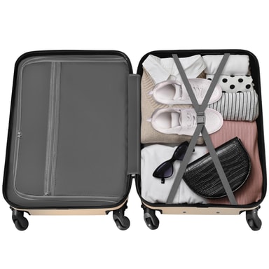 Indersiden af hver kuffert er opdelt i flere sektioner, hvilket gør det nemt for dig at organisere dine ejendele effektivt. Med en rem og en net-forlomme kan du opbevare dine ting sikkert og holde dem på plads under transporten. Denne funktion er særlig nyttig, når du har brug for hurtig adgang til dine vigtige dokumenter eller småting under rejsen.