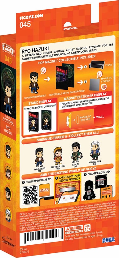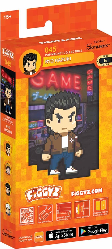 First 4 Figures Figgyz Shenmue magnet-actionfiguren har en vendbar metalplade med to forskellige udstillingsmuligheder, en pixel-art-stil figur, en 3D-magnetisk pop-out-effekt, en udstillingsfod og et magnetisk klistermærke.Læs mere om produktet