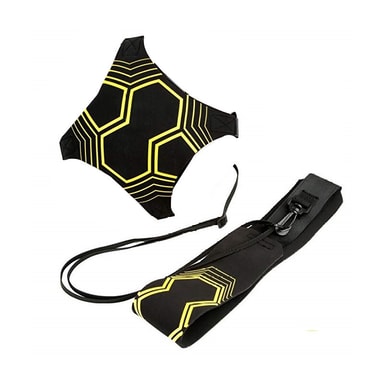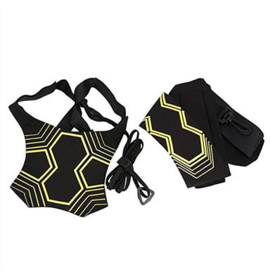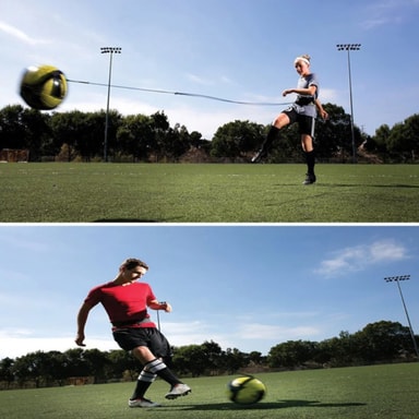 Øv boldkontrol med et elastisk træningsbånd: Vikl den ene del om din talje og sæt fodbolden ind i den anden del for ultimativ træning med elastikken. Forbedr boldkontrol, koordination og teknik med fodboldtræningsbåndet.