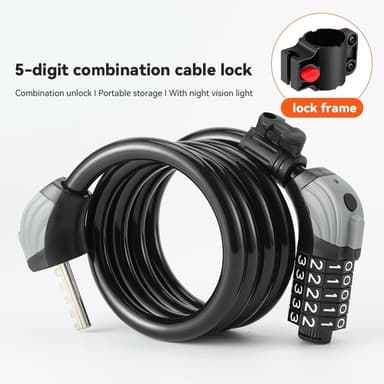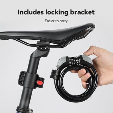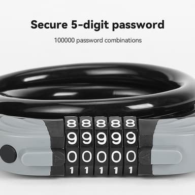 Sikker kombinationslås: Denne cykellås har en 5-cifret kombinationslås, der tilbyder 100.000 mulige kombinationer for øget sikkerhed og ro i sindet. Nulstilling af koden er enkel og bekvem, så du kan personliggøre din sikkerhed.