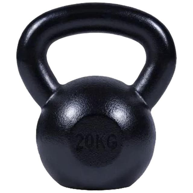 Sort støbejern kettlebell fås i vægte fra 4 kg til 32 kg. Netop denne model fås også i farverne guld og sølv/grå. Denne kettlebell er støbt i ét stykke, har en flad bund for stabilitet og vægtmarkering på fronten.