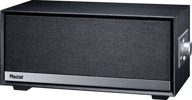 The Magnat Prime Classic offers pleasant and dynamic stereo sound from a compact wooden enclosure. The stereo speaker system concealed behind the fabric grille is supported by a powerful integrated subwoofer. The long-throw bass radiator is optimally positioned at the bottom and provides low bass support with absolutely no ambient noise. The result is a richly detailed stereo sound including low and powerful bass reproduction. The latest-generation integrated digital amplifier combines a total power output of 80 watts in three amplifier channels. State-of-the-art filtering and equalizing via DSP chip ensure the best possible sound. The Prime Classic receives music via Bluetooth® with the high-end Qualcomm® aptX™ audio standard, while an Aux input at the rear provides access for other audio devices. The Prime Classic is easy to operate via smartphone and by hand with the push and turn control on the side. Thanks to its compact dimensions, the Magnat Prime Classic can be used everywhere as a mini-stereo system and high-quality Bluetooth® loudspeaker.