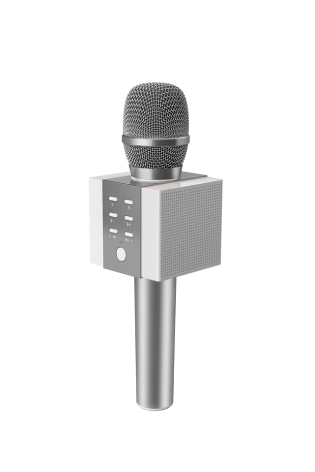 Bekvem kontrol: De sædvanlige kontroller ekko, lydstyrke og sangvalg findes direkte på selve mikrofonen. Det indbyggede batteri er nok til 6-7 timers underholdning. Tre-lags støjreduktion med høj densitet og 3D-struktur med metalbeskyttelse og indbygget skum af høj kvalitet. Professionelt indstillingssystem og lydprocessor samt aluminium-magnesium-hus - for den bedste lydkvalitet.