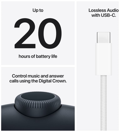 · LOSSLESS-LYD MED USB-C – Oplev alle detaljer fra originalindspilningen, når du slutter AirPods Max 2 til din enhed via USB-C.4 Du kan oplade dine AirPods Max 2 med det samme kabel, som du bruger til at oplade dine andre Apple-enheder.