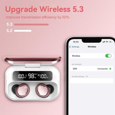 • Q26 Bluetooth headset Digital Display In-Ear trådløse hovedtelefoner PowerBank funktion - Lyserød