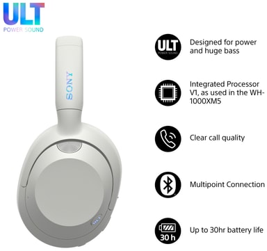 Den kraftfulde lyd, du oplever, kommer fra Sonys topmoderne Integrated Processor V1 og leveres via Sonys store 40 mm driverenheder af høj kvalitet. ULT WEAR-hovedtelefoner er resultatet af årtiers lydekspertise fra Sony og er designet til dem, der er besatte af bas.
