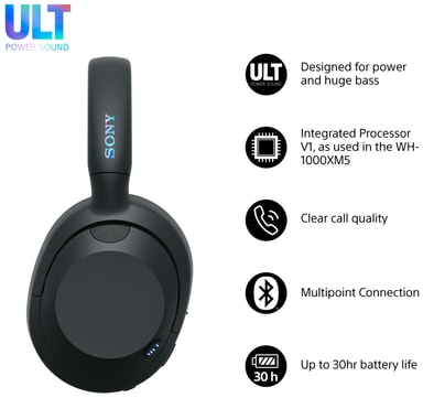 Den kraftfulde lyd, du oplever, kommer fra Sonys topmoderne Integrated Processor V1 og leveres via Sonys store 40 mm driverenheder af høj kvalitet. ULT WEAR-hovedtelefoner er resultatet af årtiers lydekspertise fra Sony og er designet til dem, der er besatte af bas.