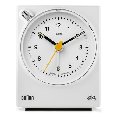 Dette stemmeaktiverede vækkeur fra braun måler 76mm x 63mm x 34mm og er tilgængeligt i tre farver. Det har et letlæseligt skive layout, stigende alarm, stemmeaktiveret snooze funktion og et stille og nøjagtigt tysk kvarts urværk. Duracell batterier er inkluderet.