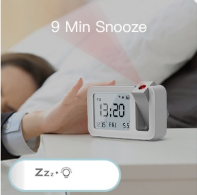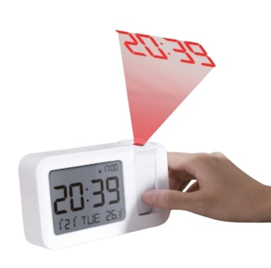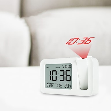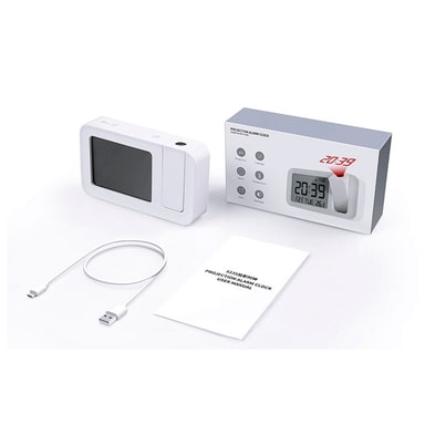 Alsidigt design: Dette produkt er mere end blot et ur og tilbyder tidsprojektion, alarmfunktion, kalender, 24-timers visning, temperatur i Celsius eller Fahrenheit, fugtighedsmåler, dag og måned visning. En komplet ledsager til alle behov.