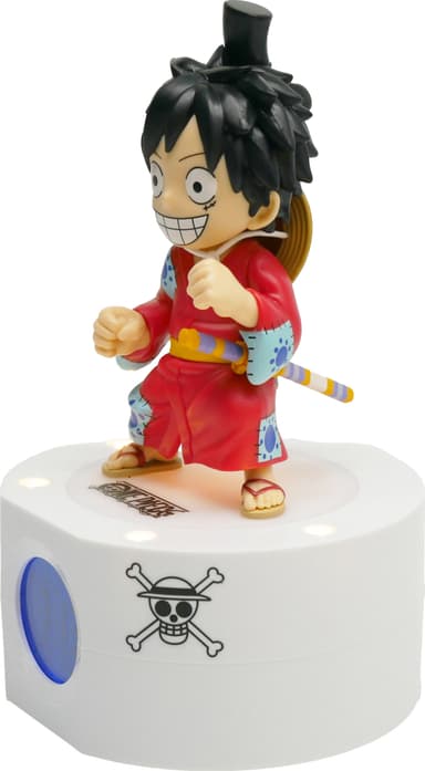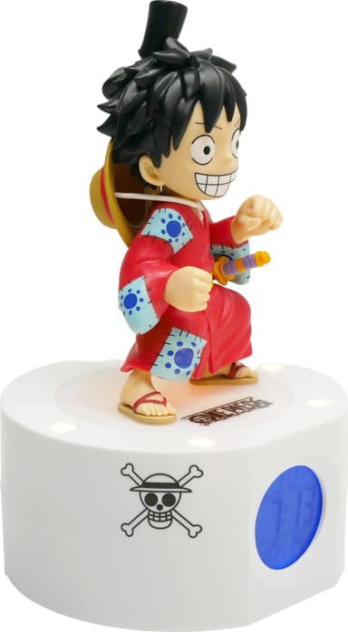 Teknofun Wano Kuni Luffy One Piece vækkeuret har en Luffy-figur med LED-lys med 2 tilstande/3 lysstyrker, et baggrundsbelyst digitalt display der viser tid, dato og temperatur, en programmerbar alarm og en berøringssensor til styring af lys og alarm.Læs mere om produktet