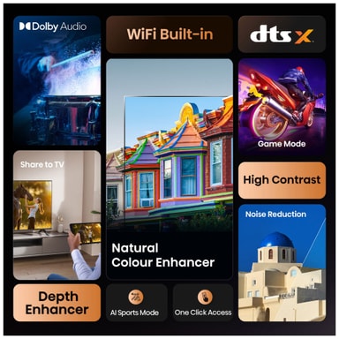 Film, serier, sport og musik – den underholdning, du elsker, bliver endnu bedre med Hisense TV med Dolby Audio og DTS® Virtual:X™. Nyd krystalklar lyd, tydelig dialog, fine detaljer og realistisk surroundeffekt, der forstærker hvert øjeblik.