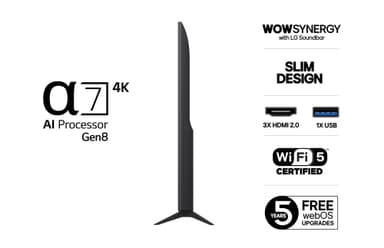 Med 4K HDR, opgraderet α7 AI-processor og personlig webOS giver UA75 skarpe billeder, optimal ydeevne og nem streaming i et slankt design. Et rigtig godt all-round tv til daglig underholdning, nu med Magic Remote-kompatibilitet og understøttelse af dineLæs mere om produktet