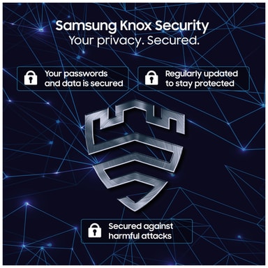 *Samsung Knox Security gælder for Samsung TV drevet af Tizen®, lanceret siden 2015. Seneste softwareopdatering er påkrævet.