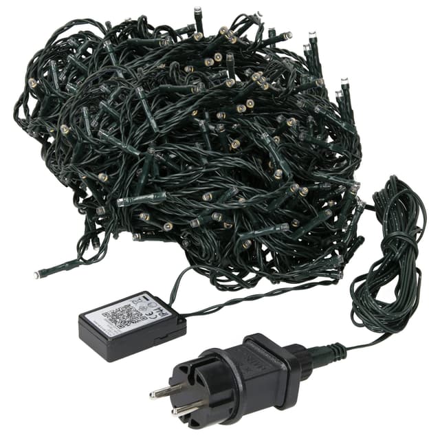 Goobay 280 LED lyskæde med ring til juletræ med timer og hukommelsesfunktion, 8 lysindstillinger, 24 V ekstern transformer, varm hvid (2500K), til indendørs og udendørs brug (IP44)