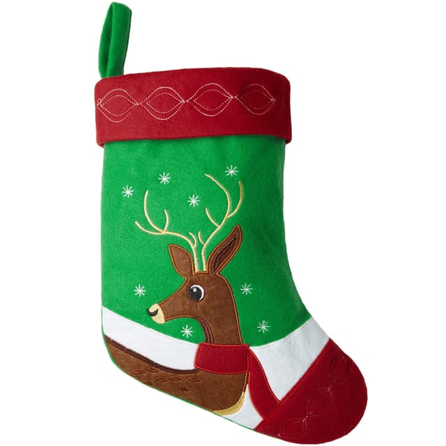 tectake Julestrømpe med hjorte-motiv 26 x 36.5 x 0.5 cm Rød/Grøn