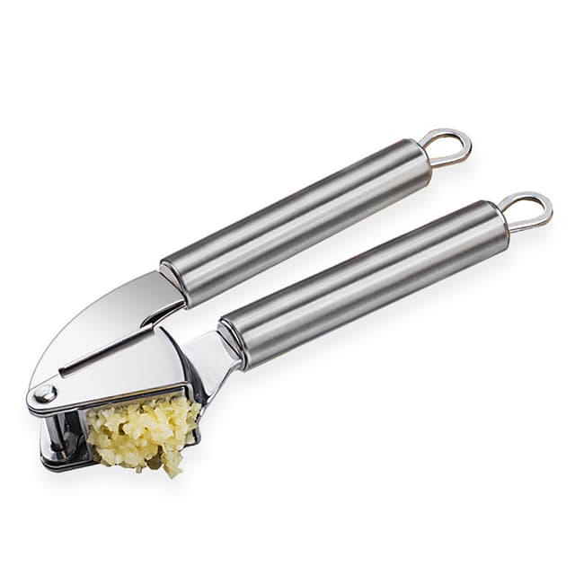 Hvidløgspresser i rustfrit stål med skræller og rengøringsbørste