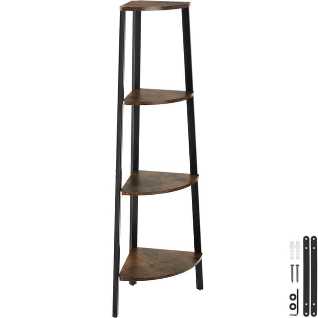 tectake Hjørnereol Portland 34x34x158,5cm 34 x 34 x 158.5 cm Industrielt Mørkt Træ, Rustikt