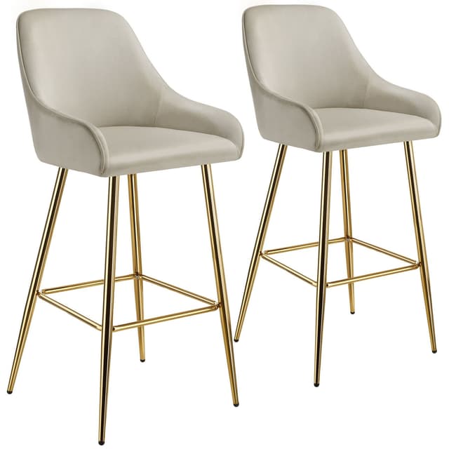 tectake Barstol Avane med ryglæn, polstret, velour look 2-sæt