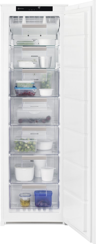 Frysere med FrostFree- og NoFrost-funktion bruger en teknologi, der sikrer, at der ikke opstår rim i din fryser, og derfor behøver du ikke afrime den. Det virker ved, at fryseren har fordamperen siddende udenfor fryserummet med en indbygget varmefunktion, der opvarmer fordamperen cirka fire gange dagligt. Denne opvarmning afiser fordamperen. Det betyder, at du ikke skal afrime fryseren. En ventilator i fryseren sørger for, at den indvendige luft altid er i bevægelse, så rim og is ikke klæber til maden eller siderne.