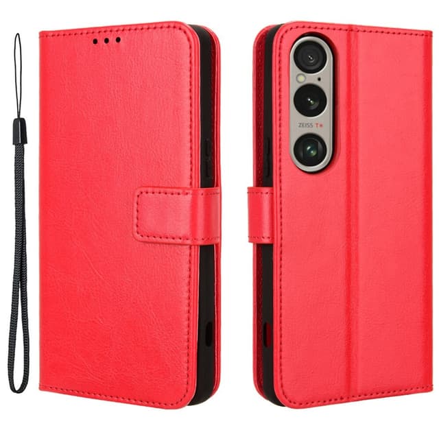 SKALO Sony Xperia 1 VI Crazy Horse Pungetui PU læder - Rød