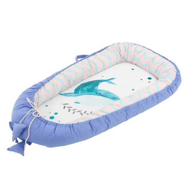 Joyz Babynest, Panda Hellblau, 90x50cm, Bomuld, dobbeltsidet, allergifri