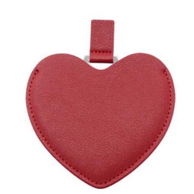 Hjerteformet PU Læder Kosmetikspejl - Kompakt Rejsespejl med Rustfrit Stål Rød