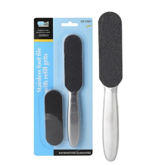 Fodfil til hård hud, dobbeltsidet fodskrubber i rustfrit stål