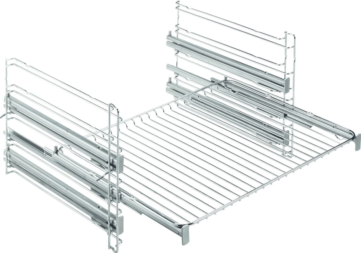 Nyd en nem og sikker ovnadgang. Hold nemt og sikkert øje med din ret ved hjælp af teleskopskinnen. En jævn bevægelse lader dig trække ovnpladen ud som en skuffe uden at du skal have hånden ind i ovnen. Klipses fast på ovnribberne på vores XXL og kompakteLæs mere om produktet