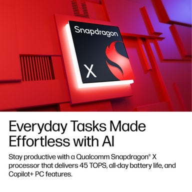 Qualcomm Snapdragon X-processoren bringer en balance mellem hastighed og effektivitet til denne bærbare computer og håndterer daglige opgaver, multitasking og AI-drevne funktioner med lethed. Den er designet til at føles hurtig og responsiv, samtidig med at den bruger mindre strøm, så du kan arbejde, streame eller browse problemfrit i længere tid uden at bekymre dig om batteriforbrug.