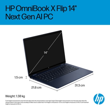 Denne HP OmniBook X Flip 14" Copilot+PC er en dynamisk maskine designet til fleksibilitet og ydeevne. Med en AI-drevet processor og OLED-skærm tilbyder den både funktionalitet og stil. Det fleksible design og det langvarige batteri gør den ideel til kreative, der har brug for at arbejde hvor som helst med lethed.