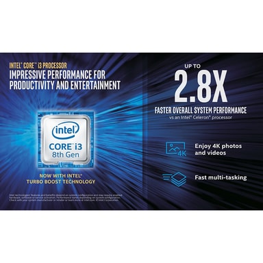 Den bærbare computer er udstyret med en hurtig 8. gen. Intel Core i3 dual core processor, der kan skifte til turbotilstand, hvis behovet opstår. Processoren kan køre 2 tråde pr. kerne, så den er også en effektiv multitasker. Processoren følges af 4 GB hurtige DDR4 RAM og integreret Intel UHD Graphics 620.