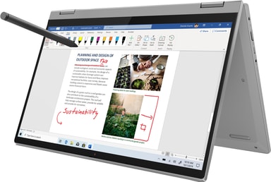 Lenovo IdeaPad Flex 5 14ITL05 2-i-1 tilbyder et kompromis mellem bærbare computer og tablets uden at gå på kompromis med strøm og bærbarhed. Den er drevet af en 11. gen. Pentium® Gold processor, så den kan køre adskillige opgaver samtidigt.Læs mere om produktet