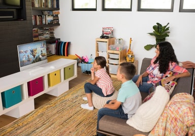 De kraftfulde B&O Play stereohøjttalere er integrerede under skærmen og kan fylde rummet med rig, detaljeret lyd.