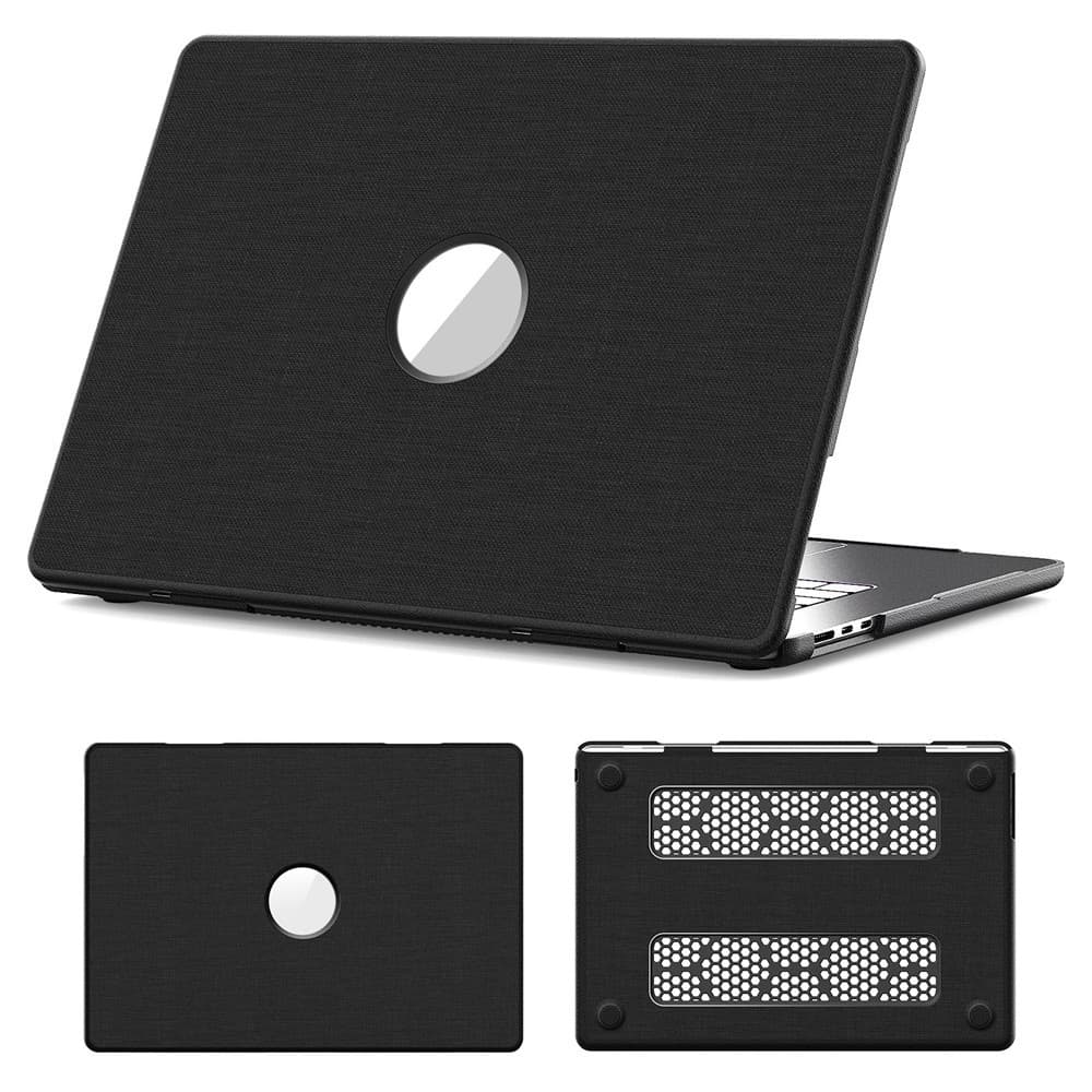 Laptop-etui til MacBook Air 15 tommer 2025 2024 2023 M2 A2941 M3 A3114 M4 A3241 Beskyttende etui - Sort【Holdbart PC + TPU + Stofmateriale】Lavet af en kombination af hård PC-skal, fleksible TPU-kanter og tekstureret stofoverflade for forbedret stabiliLæs mere om produktet